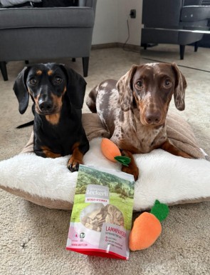 Unsere Dackel lieben die gefriergetrockneten Lammpansen-Leckerlis von ANIfit! 🐶💚
